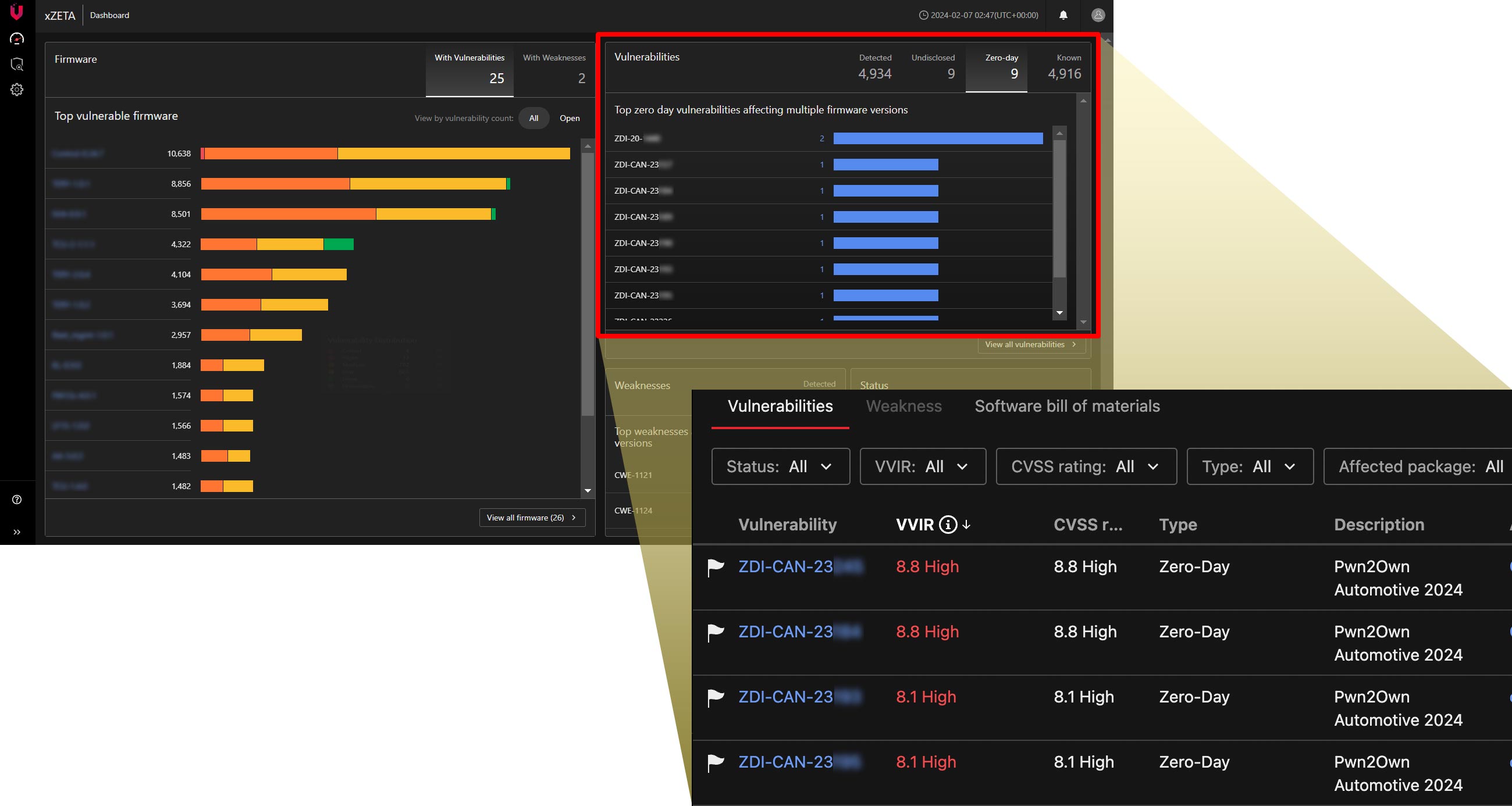 Addressing known vulnerabilities only is insufficient to effectively mitigate risks in the ever-changing automotive threat landscape. Unlike today’s vulnerability management systems that primarily focus on known vulnerabilities, our xZETA is designed to detect unique zero-day vulnerabilities in the firmware or binary of electronic control units (ECUs) or EV charging systems.
