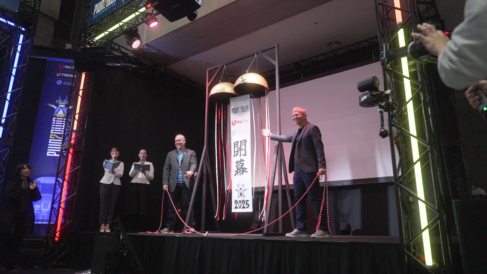 Figure 1. Brian Gorenc (left), Vice President of Threat Research at Trend Micro, and Max Cheng, CEO of VicOne, during the opening ceremonies of Pwn2Own Automotive 2025