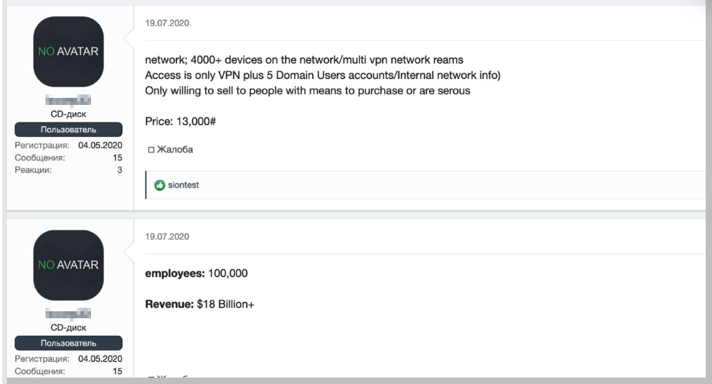 Figure 4. Posts on a cybercriminal underground forum by a user selling VPN access to a car manufacturer’s network (as indicated in the forum thread)