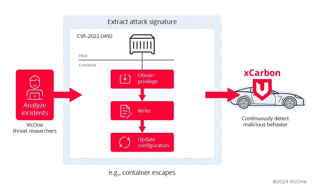 VicOne’s frictionless intrusion detection or prevention system (IDS/IPS), xCarbon, not only provides container security but also supports operations within VM environments, ensuring readiness for risks in SDVs.