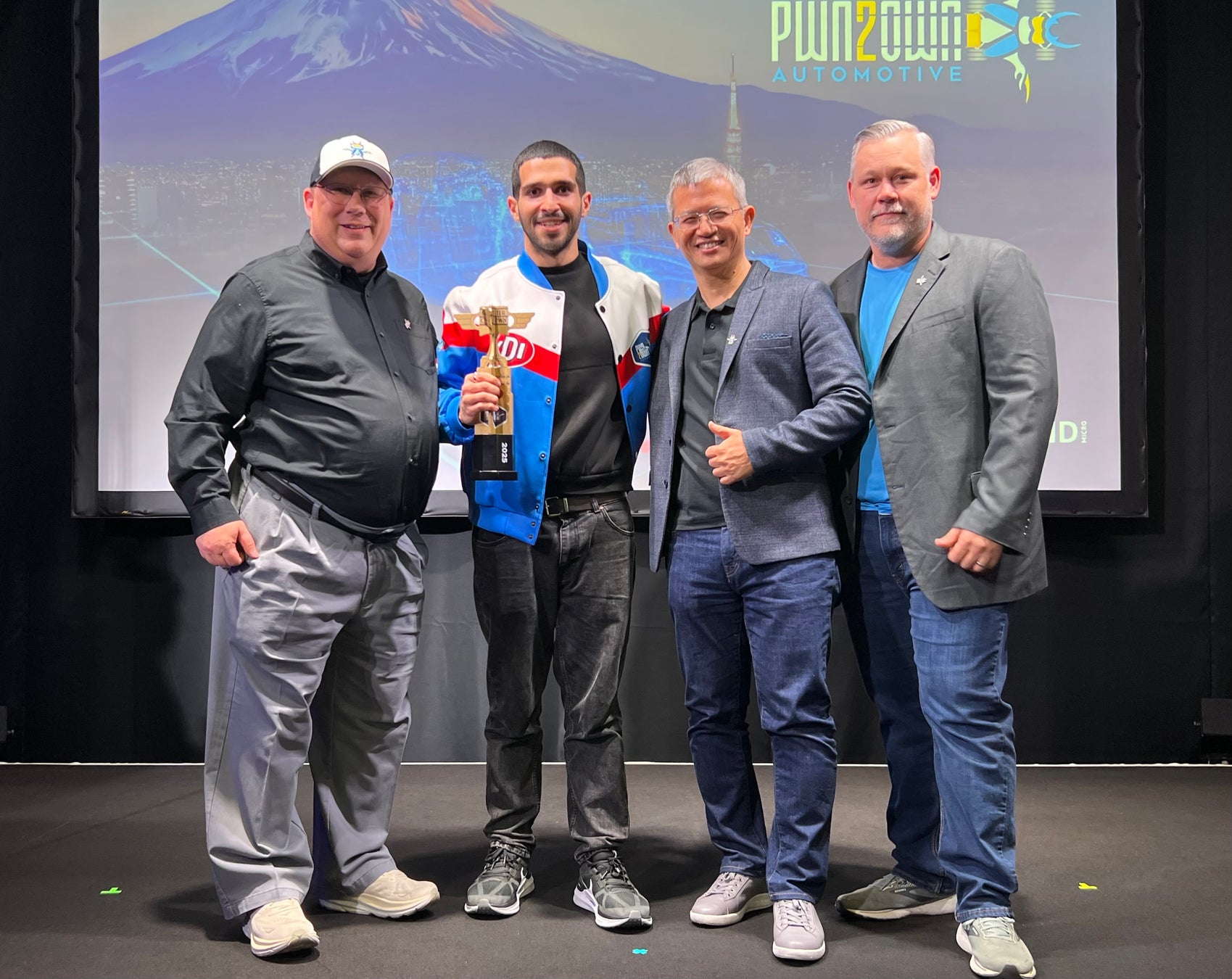 Sina Kheirkhah of Summoning Team was crowned Master of Pwn of the Pwn2Own Automotive 2025, where researchers from 13 countries discovered 49 unique zero-day vulnerabilities during the three-day event. From left: Dustin Childs, Head of Threat Awareness at the ZDI; Sina Kheirkhah, Pwn2Own Automotive 2025 Master of Pwn; Max Cheng, CEO of VicOne; and Brian Gorenc, Vice President of Threat Research at Trend Micro