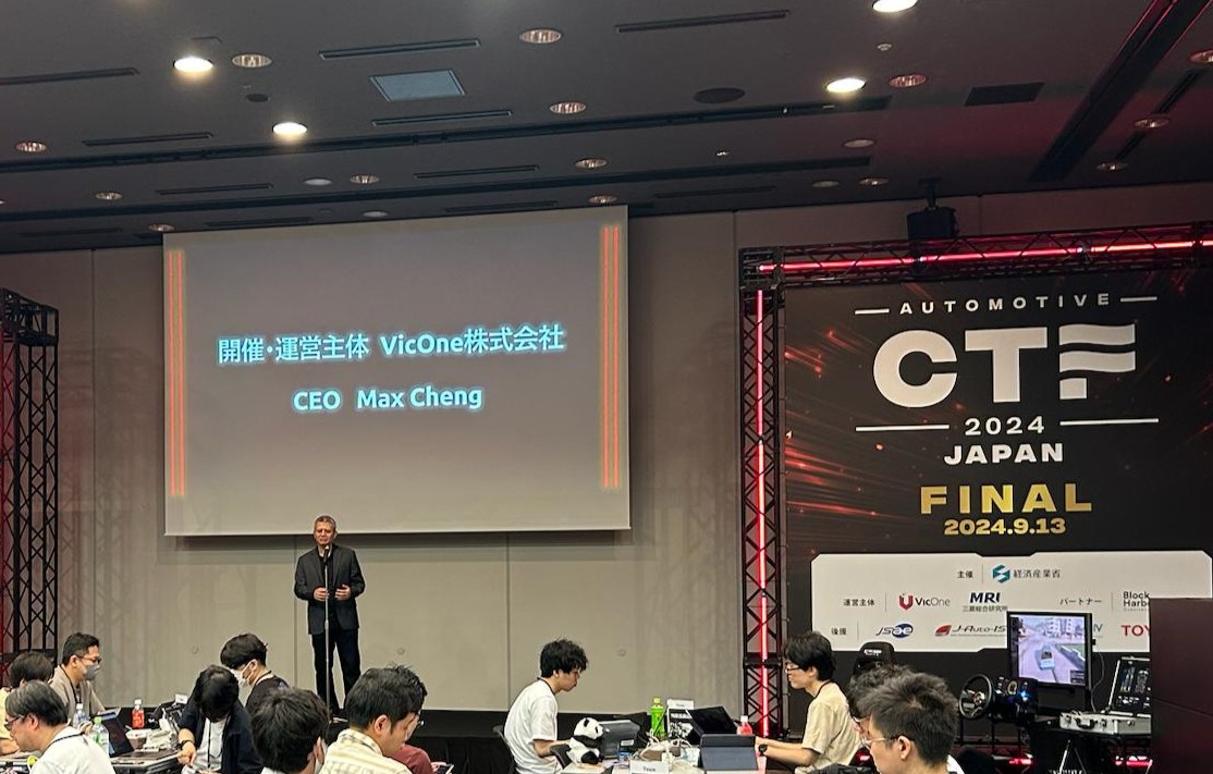 2024年9月13日、東京のベルサール六本木にてAutomotive CTF Japanが初開催され、興奮の中クライマックスを迎えました。経済産業省の委託を受け、Block Harbor とのパートナーシップの元、VicOne と三菱総合研究所 (MRI) が共同運営するこのキャプチャー・ザ・フラッグ (CTF) コンテストは、サイバーセキュリティのエキスパートのスキルアップを目的としており、初心者においては自動車サイバーセキュリティ分野に触れる機会を提供することを目指しています。また、このコンテストの開催にあたり、自動車技術会 (JSAE)、Japan Automotive ISAC、ティアフォー、トヨタ自動車からも後援をいただきました。