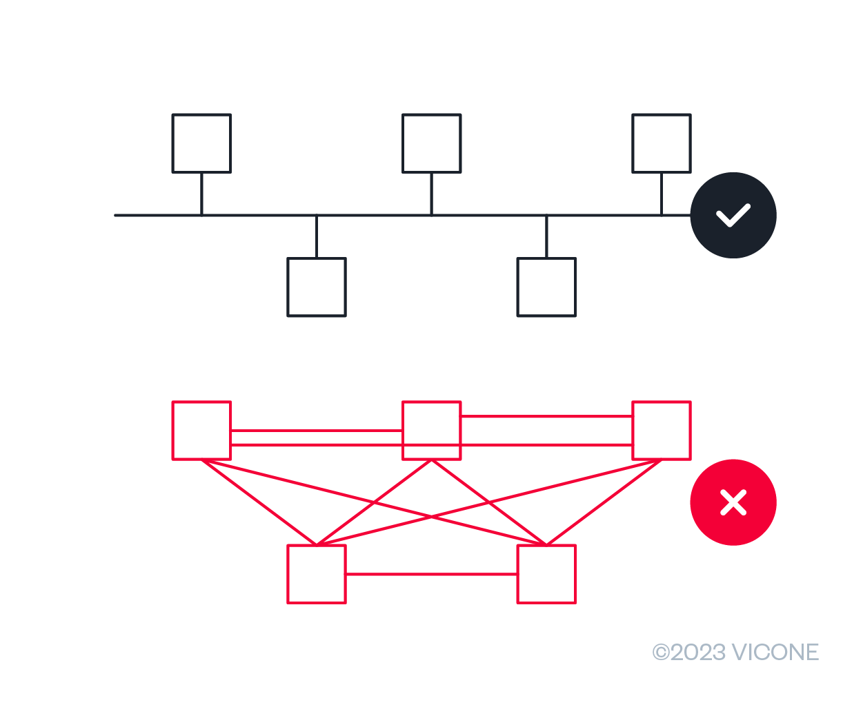 - 配線の複雑さの軽減:CANバスでは、単一のネットワークケーブルで複数のイント・トゥー・ポイント接続を置き換えることが可能となり、配線の複雑さとコストを削減します。車両には通常、約1,500本の銅線が使用され、その総延長は約1マイル(約1.6km)にも及びます。CANバスを導入することで、最大50ポンド(約23kg)の配線重量を削減できます。