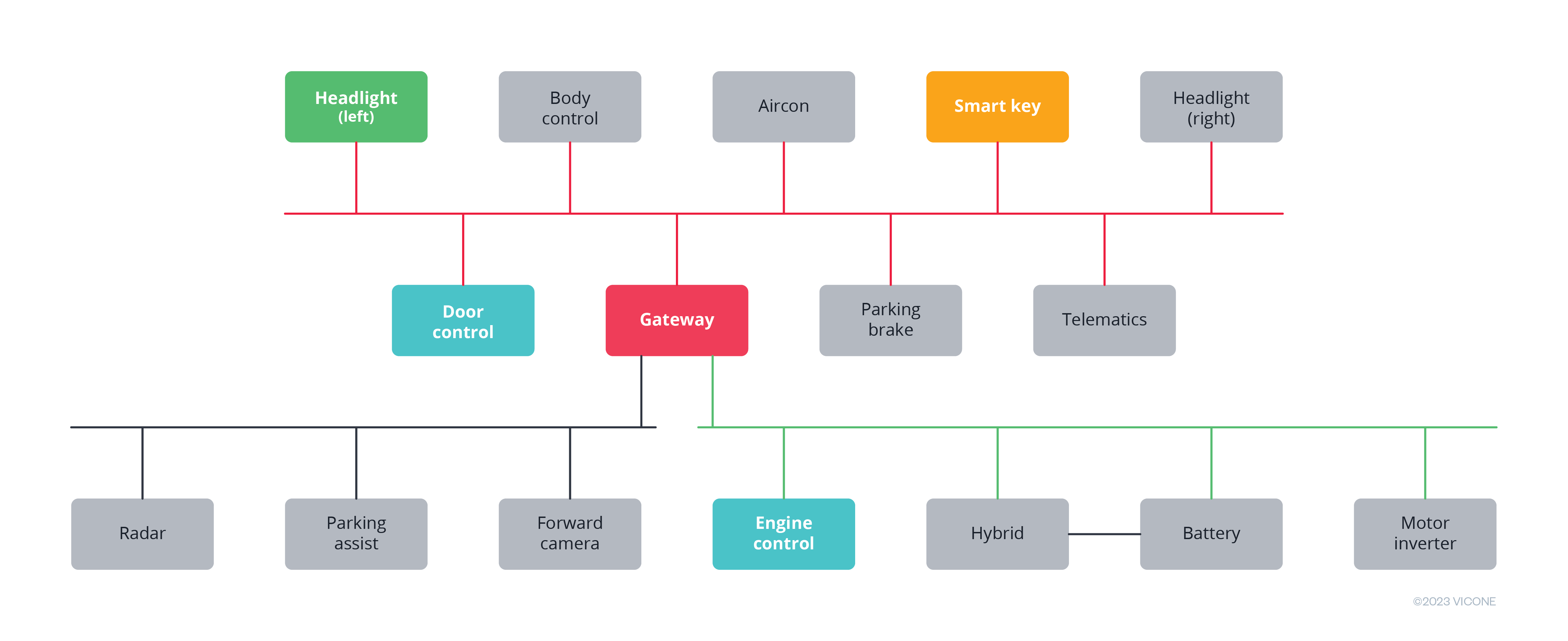 図2. CANバスは新規デバイスの接続を容易にする (CSS Electronics社提供のオリジナルに基づく)