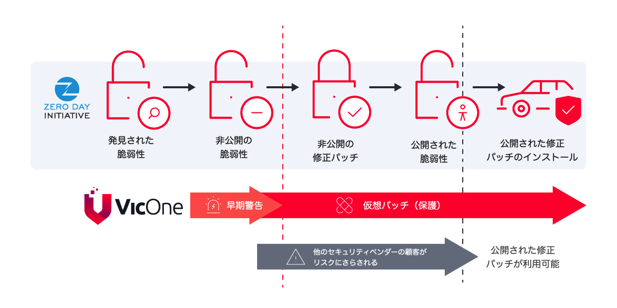 過去10年に渡りZDIによって構築された堅牢な脆弱性管理プロセスに基づいて、Pwn2Own Automotiveで発見されるゼロデイ脆弱性は、適切に関連するベンダーへと報告されます。ZDIは、これらのベンダーと連携して、有効な修正パッチを開発することも可能です。ZDIの重要なパートナーであるVicOneは、今回のようなPwn2Own Automotiveイベントを通じて、新たな脆弱性や攻撃シナリオについての早期情報を得ることができます。こうした連携により、VicOneは、ベンダーやZDIと緊密に協力し、自動車サイバーセキュリティの専門知識を活かしています。さらに、公式の修正パッチがリリースされる前に、積極的な防御措置が施される仮想パッチの準備にも取り組んでいます。