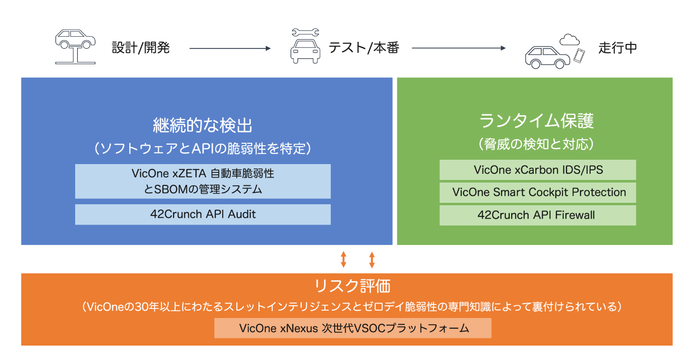 図:自動車ライフサイクルを通してVicOneと42Crunchが提供する包括的で実用的なAPIセキュリティ