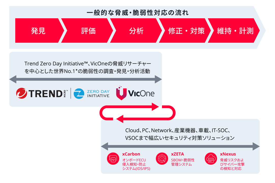 トレンドマイクロが運営する世界最大級の脆弱性発見コミュニティTrend Zero Day Initiative™ (ZDI)、VicOneならびにトレンドマイクロの脅威リサーチャーなど、専門性の高い知見を活かしながら自動車業界における継続的な調査活動と提言を実施しています。さらに、BlockHarbor社をはじめとする幅広いパートナーシップによりお客様からの多様なリスク評価やトレーニングのご要望にもお応えしております。