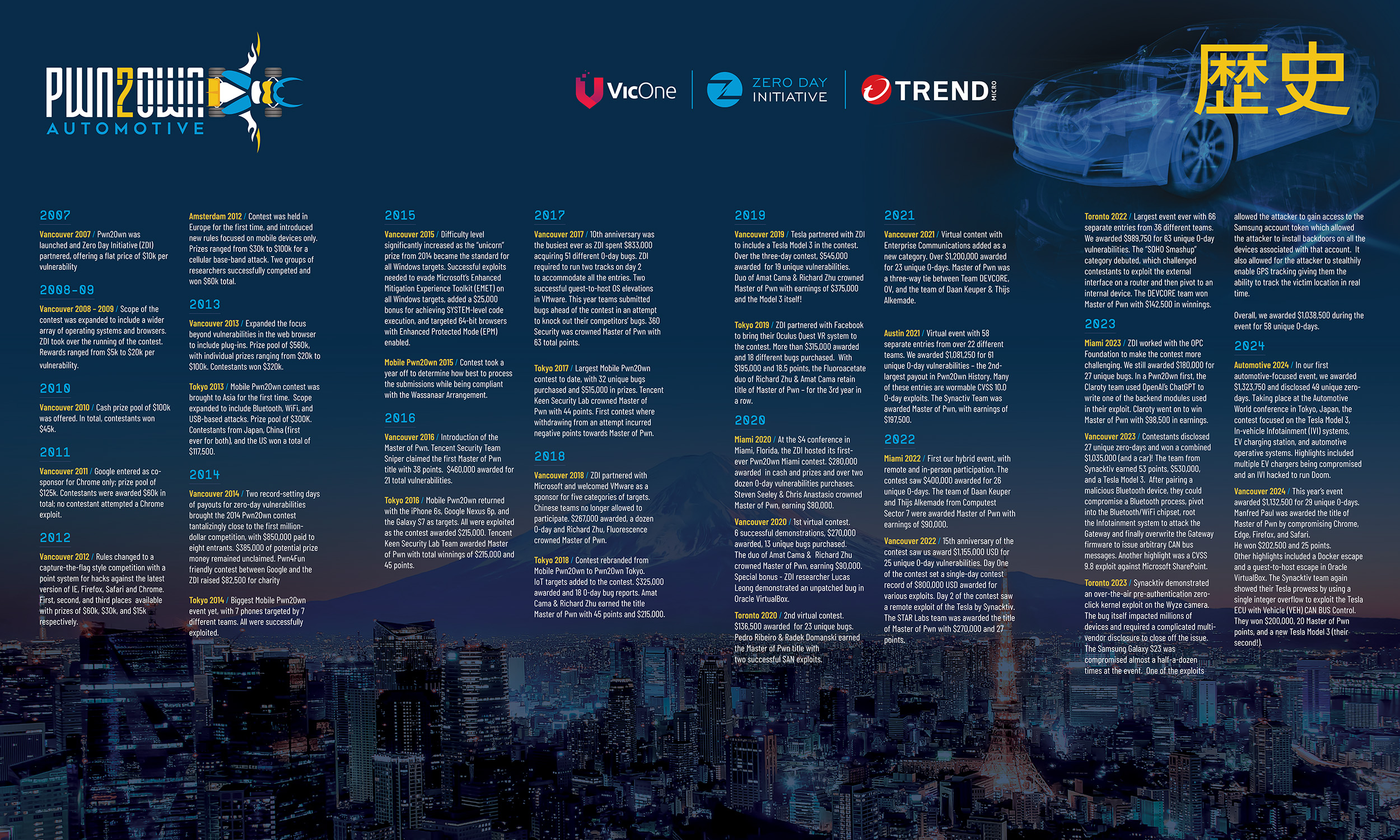 To meet this challenge, VicOne is once again driving Pwn2Own Automotive, the world's largest zero-day vulnerability discovery contest focused on connected vehicles and the technologies that power them.