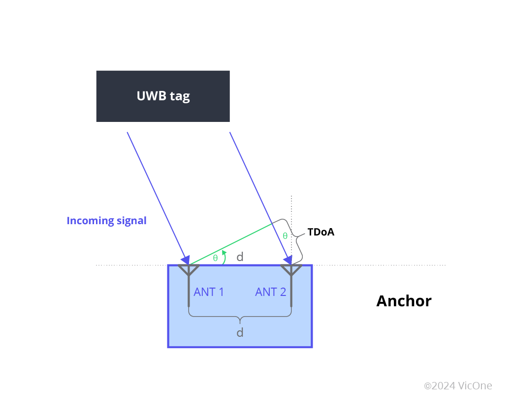 Figure 4. The PDoA or AoA method of calculating the location of the tag