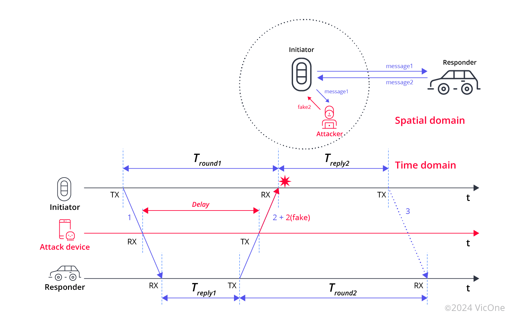 As previously described in the first installment of our two-part blog series, relay attacks occur when the signal between a key fob and a car is extended via a “tunnel” created by a pair of radio devices controlled by an attacker. This is possible because the communication between a car and its key fob is usually not time-sensitive. However, UWB technology is largely immune to relay attacks thanks to its high temporal resolution and precise ToF measurements. The precision of UWB ensures that any attempt to relay the signal results in a noticeable time discrepancy. Cars equipped with UWB can easily identify that the key is out of range by calculating the time difference between the signal transmitted by the key fob and received by the car.