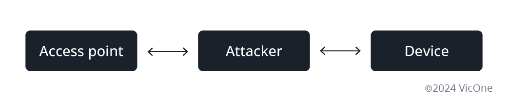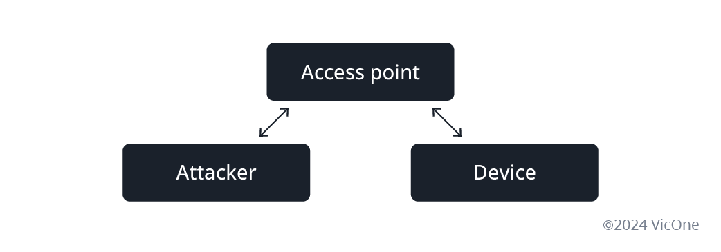In another scenario, if an attacker knows the AP’s information, they can set up a duplicate AP and trick the target device into connecting to it. This allows the attacker to perform a man-in-the-middle (MITM) attack.