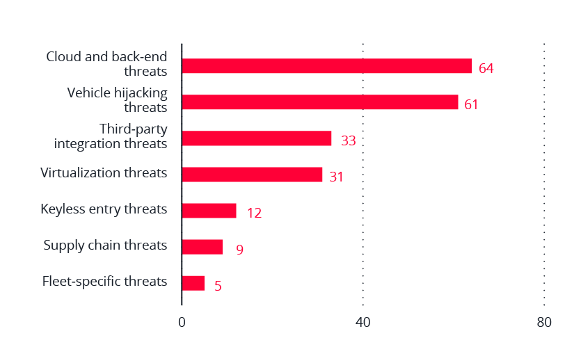 Figure 2. Most prevalent automotive cybersecurity threats in 2024 based on analyzed incidents
