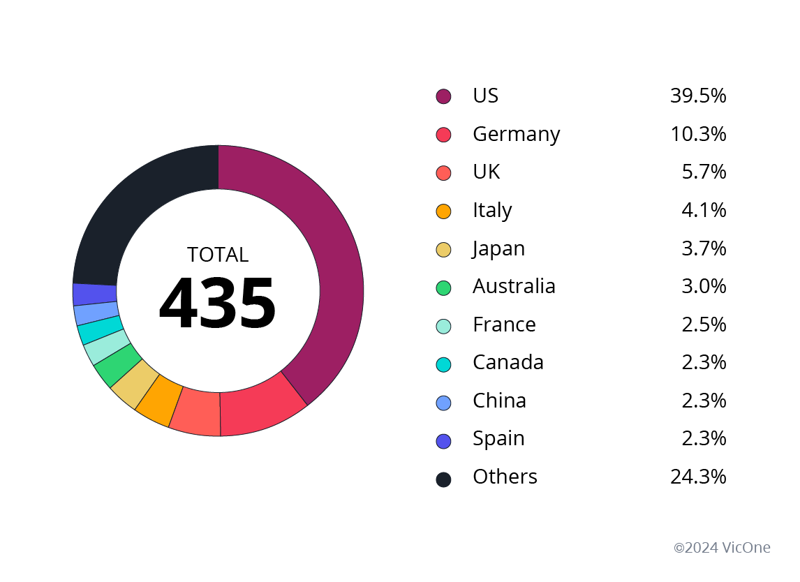 Figure 3. The distribution by location of the headquarters of automotive companies reportedly hit by ransomware attacks from 2021 to the first half of 2024
