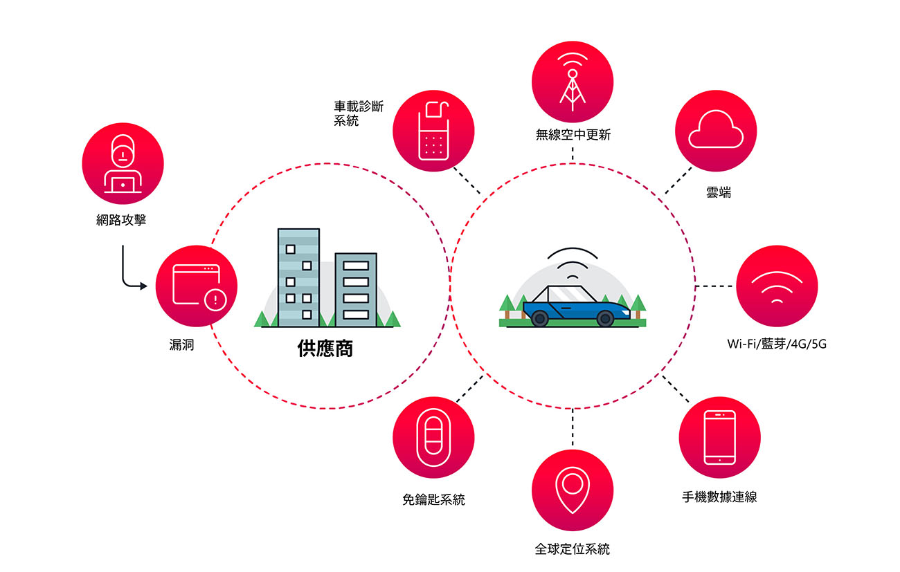 安全研究人員很早之前就著手調查第一代聯網汽車的弱點; 透過對汽車網路安全及其周邊技術的研究,我們開始了解聯網汽車各種攻擊面向的範圍及其供應鏈中隱藏的風險。