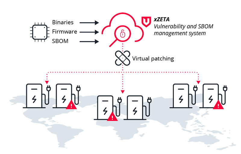 隨著EVSE 網路威脅不斷發展,維持對漏洞和惡意對象(例如零日漏洞、進階持續性威脅(APT) 和勒索軟體)持續監控至關重要。VicOne的解決方案能夠做到讓您在EV充電器的二進位、韌體和軟體物料清單(SBOM)上執行這樣的操作。偵測到漏洞後,我們的解決方案會與邊緣的安全代理程式結合並部署虛擬修補丁*,防止漏洞被不當利用。這種方法無需進行更改就可以保護您的系統,VicOne提供平均 102 天的安全防護,在靜待廠商完成漏洞修補過程中不受到威脅。