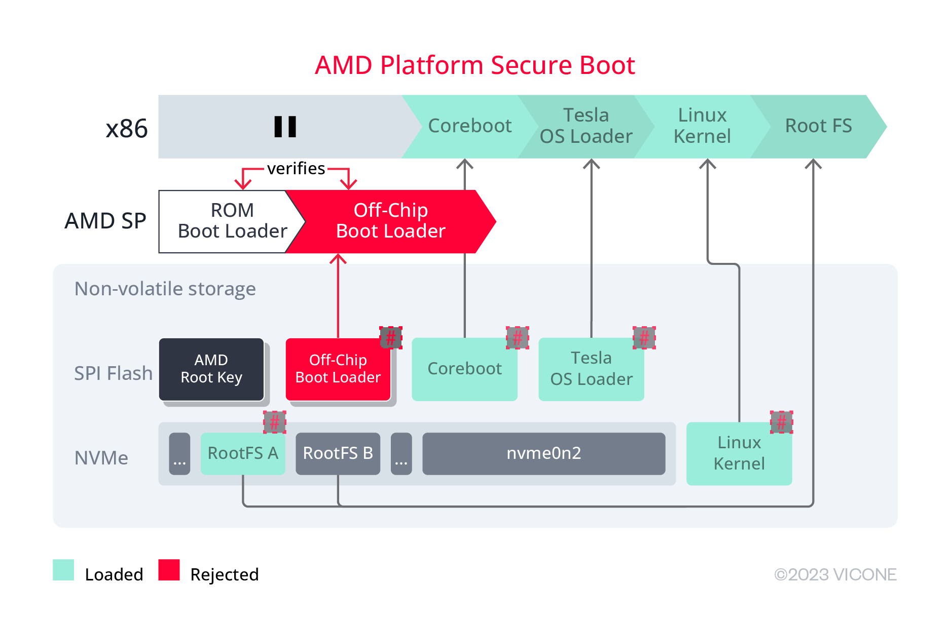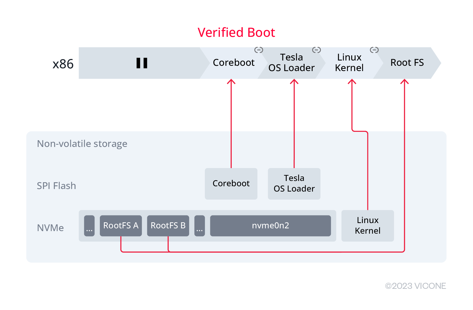 This is part of the features of secure boot, a critical security mechanism widely adopted in most modern systems. By taking advantage of cryptographic algorithms to verify the integrity of the subsequent program slated for execution, secure boot acts as a safeguard against the execution of malicious code. Tesla has been an early proponent of this technology, particularly in its implementation in the MCU0, the first generation of its media control unit (MCU).