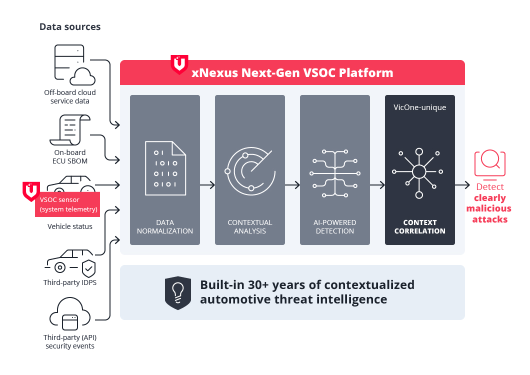 DALLAS & TOKYO — VicOne, an automotive cybersecurity solutions leader, today announced the xNexus next-generation vehicle security operations center (VSOC) platform. The new solution integrates with VicOne’s in-vehicle VSOC sensor, leveraging a unique Large Language Modeling (LLM) approach to provide customized reporting to support VSOC teams. xNexus can provide product security incident response teams (PSIRTs) or engineering teams with actionable and contextualized attack intelligence based on the needs of different stakeholders. The capabilities delivered by the new VicOne solution accelerate threat investigations, enable confident response to attacks and effectively reduce the burden of chasing inexplicable false alarms.