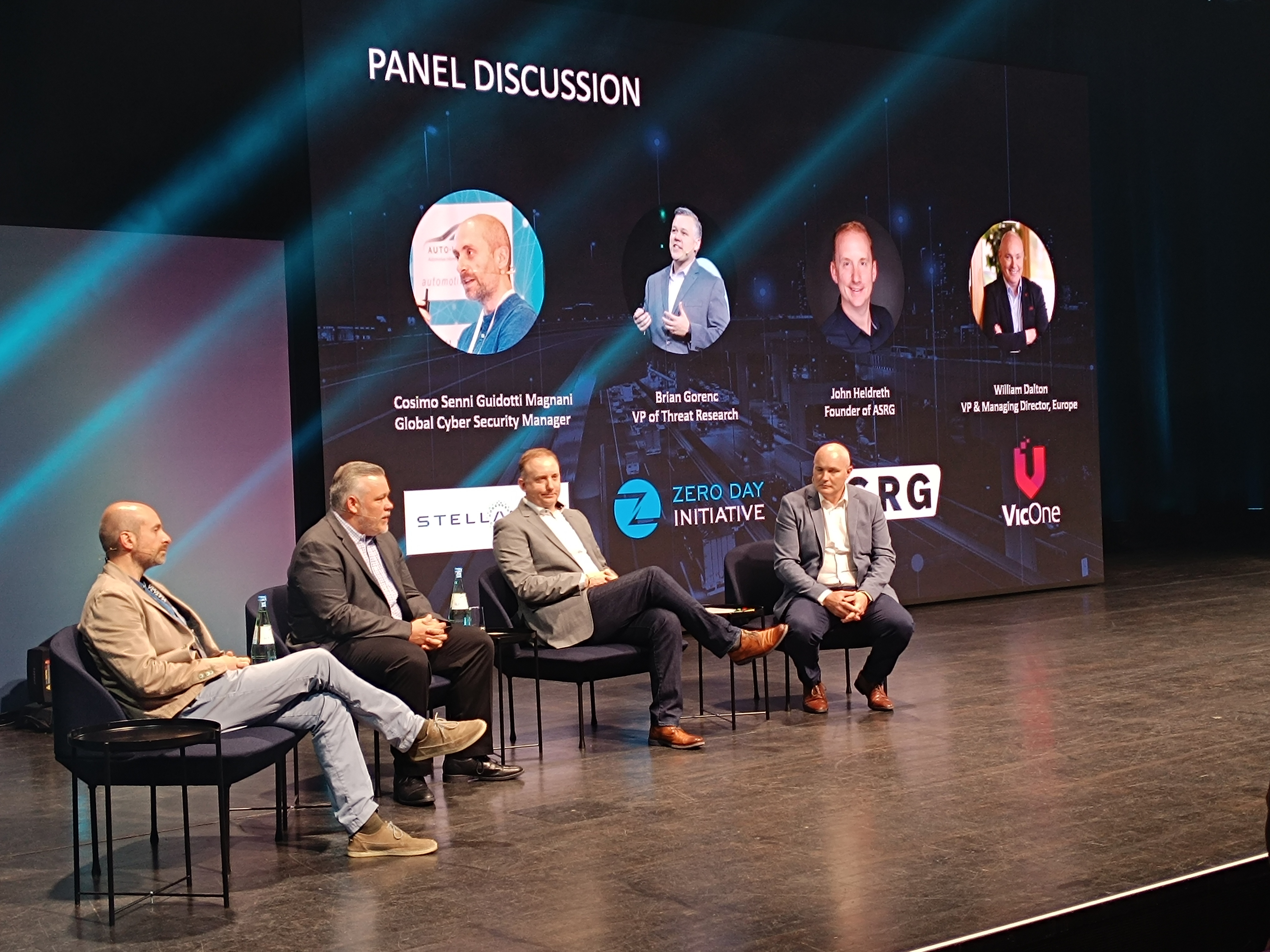 During the Auto-ISAC European Cybersecurity Summit at BMW World in Munich, VicOne and ASRG hosted a joint panel discussion on “Redefining Automotive Cybersecurity: A Life Cycle Strategy for End-to-End Risk Management” with: Gosimo Senni Guidotti Magnani, Global Cybersecurity Manager at Stellantis; Brian Gorenc, VP of Threat Research at Trend Micro; John Heldreth, Founder of ASRG; and William Dalton, VP and Managing Director for Europe at VicOne.