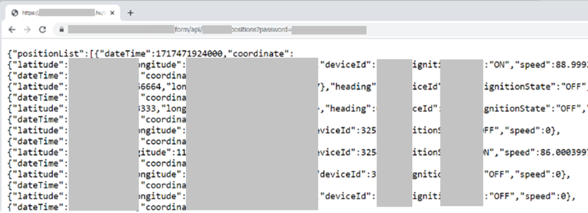 私たちは、アジア、ヨーロッパ、米国で車両追跡システムを提供している17社を無作為に選び、それらの認証プロセスを評価し、調査を行いました。分析の結果、重大な脆弱性があることが判明しました。それは、ユーザー名とともにURIパラメータで平文のパスワードが送信されるというものです。(同時に、私たちは責任ある脆弱性開示プロセスの一環として、影響を受ける企業への連絡を開始しました。)