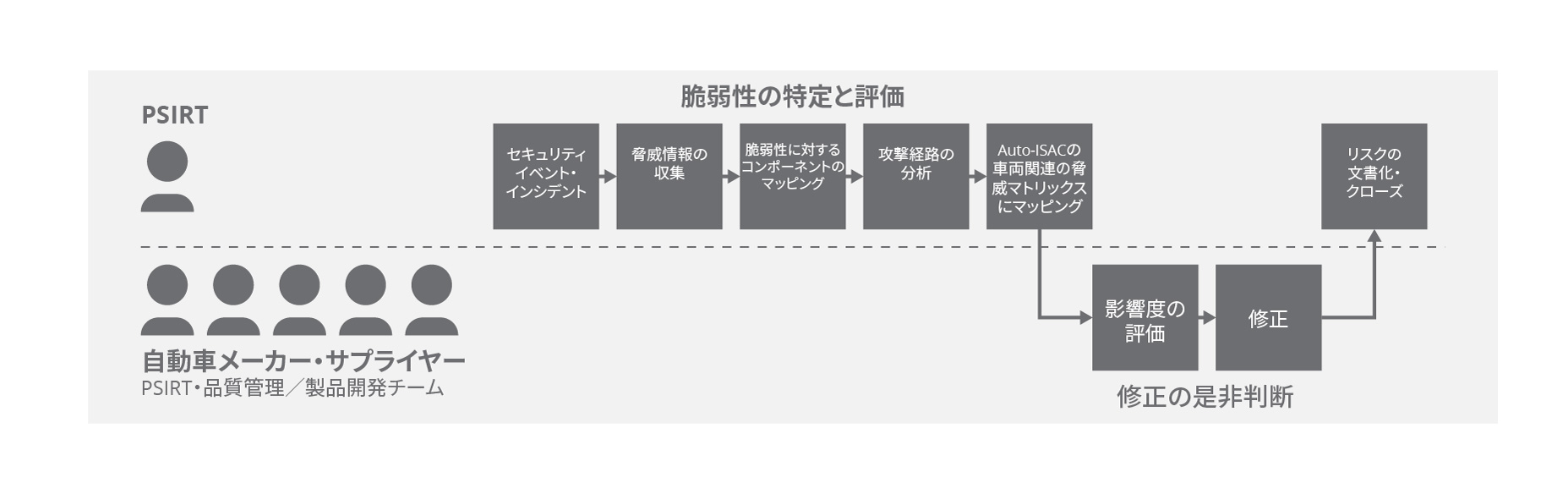 - 車両のコンポーネントと脆弱性とのマッピング:脅威データを分析し、インシデント、攻撃者の手順、具体的な車両コンポーネントとの関連性を特定する作業が必要です。