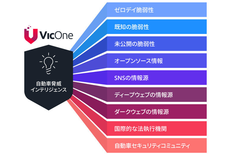 - 実戦経験豊富なVicOneのサイバー脅威リサーチラボが、ダークウェブを監視して新たな脅威を検知し、お客様自身が深く調査することなく自動車に特化したサイバー脅威インテリジェンスを入手できるようにします。