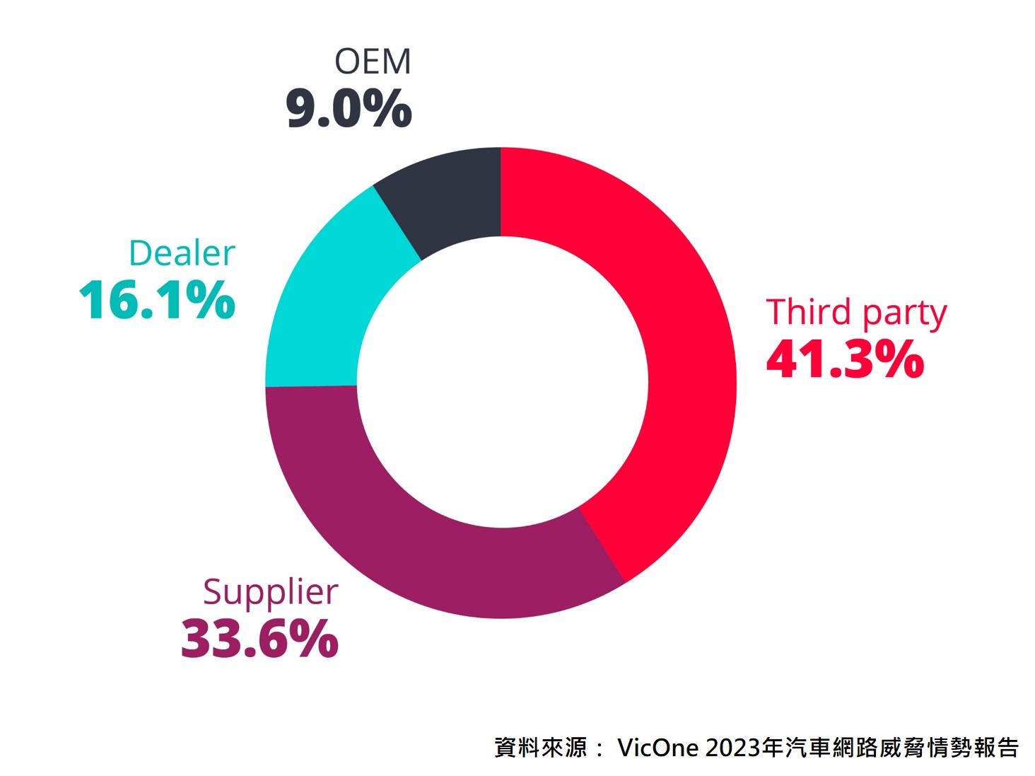 圖說:「VicOne 2023年汽車網路威脅情勢報告」指出有超過90%的汽車網路攻擊並非針對車廠(OEMs),而是針對供應鏈中的其他公司。